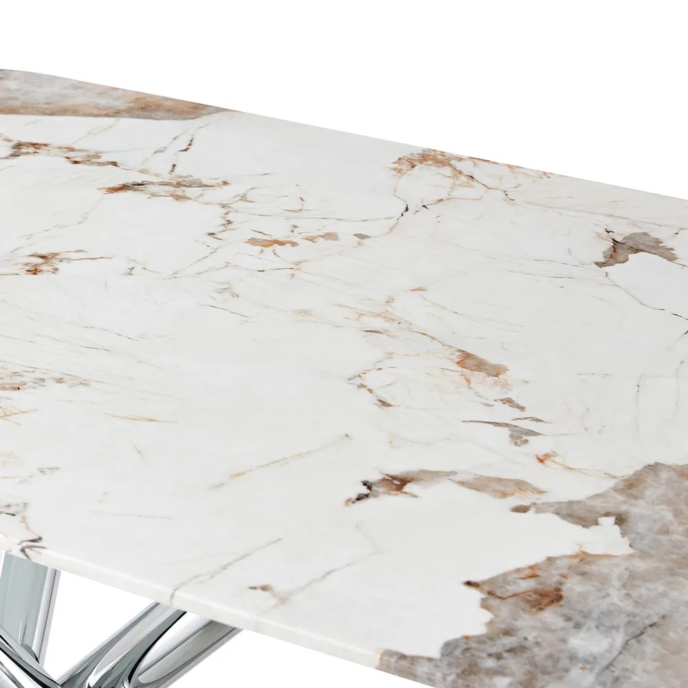 Constructed with a 0.39″ imitation marble tabletop and sturdy metal legs, this dining table combines modern aesthetics with durability. The spacious tabletop provides ample room for dining essentials, decorations, or work materials, offering both functionality and style.